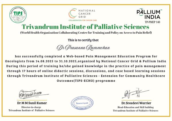 -Certification in Pain &Palliative medicine from Indian association of Palliative Care, Calicut(IAPC)