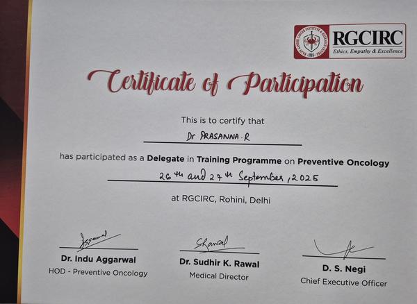 - Trained in Medical oncology RCC, JIPMER